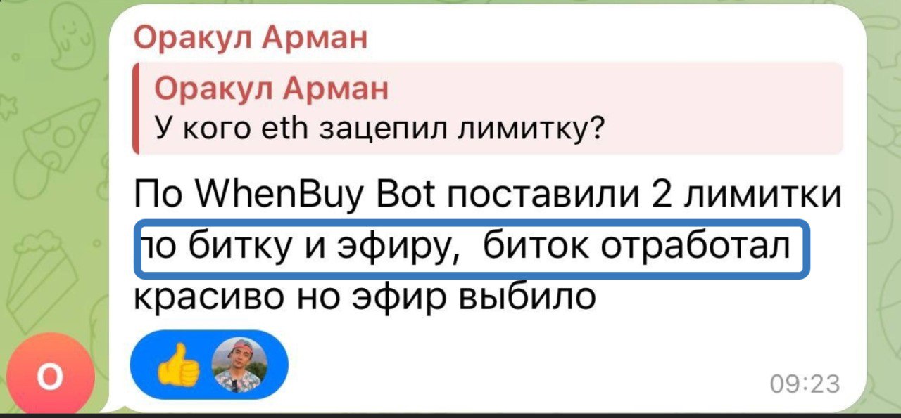 Уведомляет, когда ваш ордер сработал, и нужно поставить в б/у